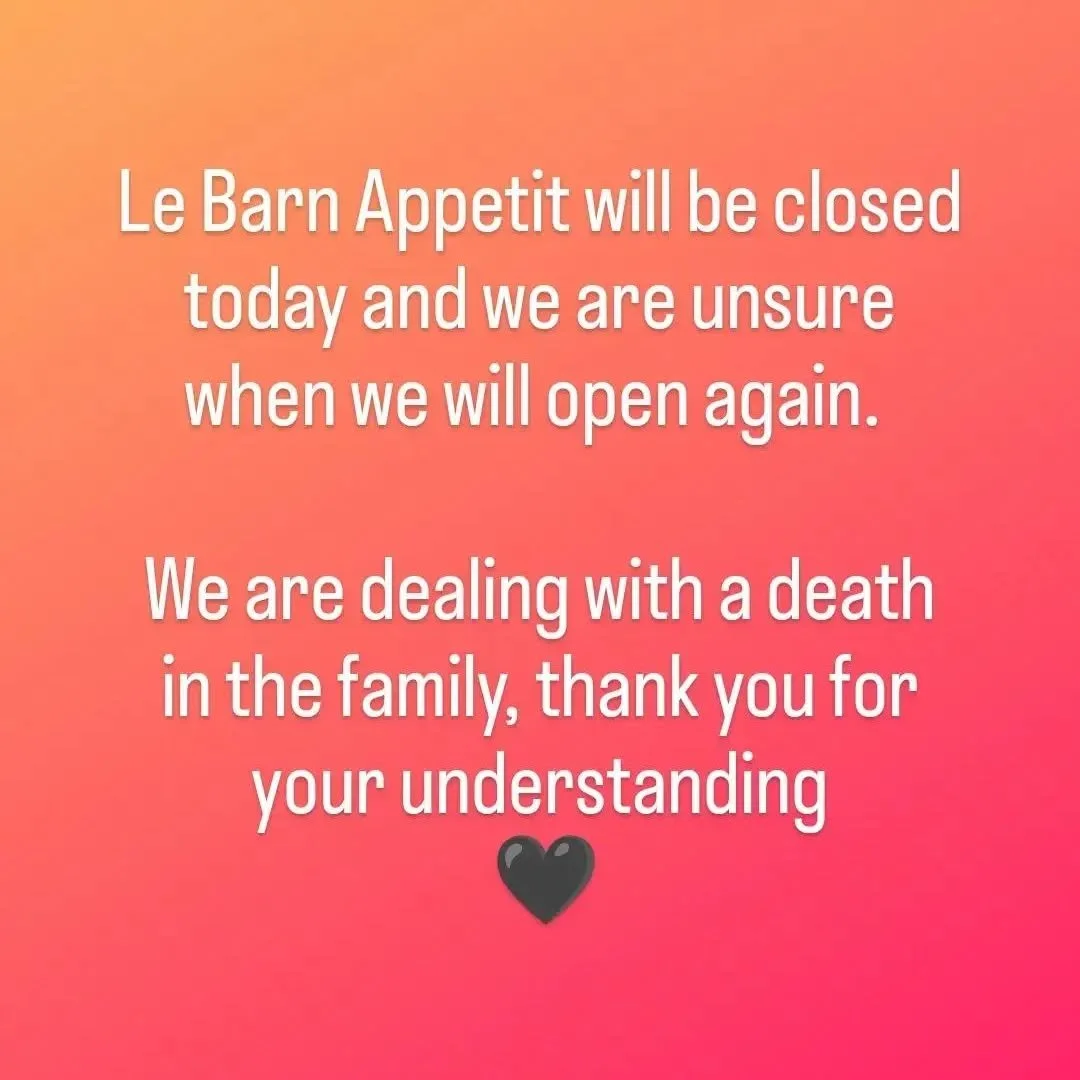 Le Barn Appetit is closed for the winter season, we look forward to welcoming you back summer 2026!